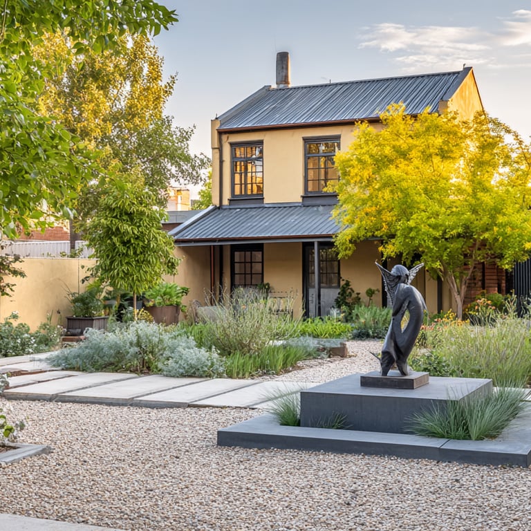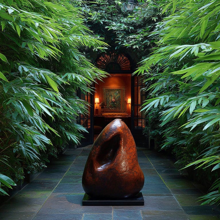 Whether carved stone, weathered steel, or bespoke contemporary form, a sculptural element introduces clarity and presence to the landscape.