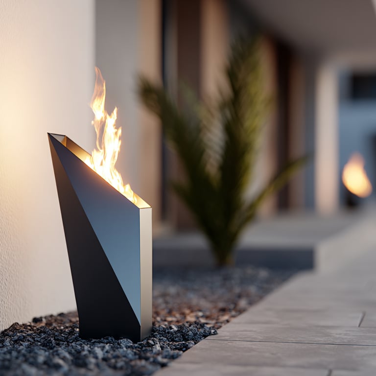 Corten steel, brushed metal, or bespoke fabricated pieces that evolve with time.
