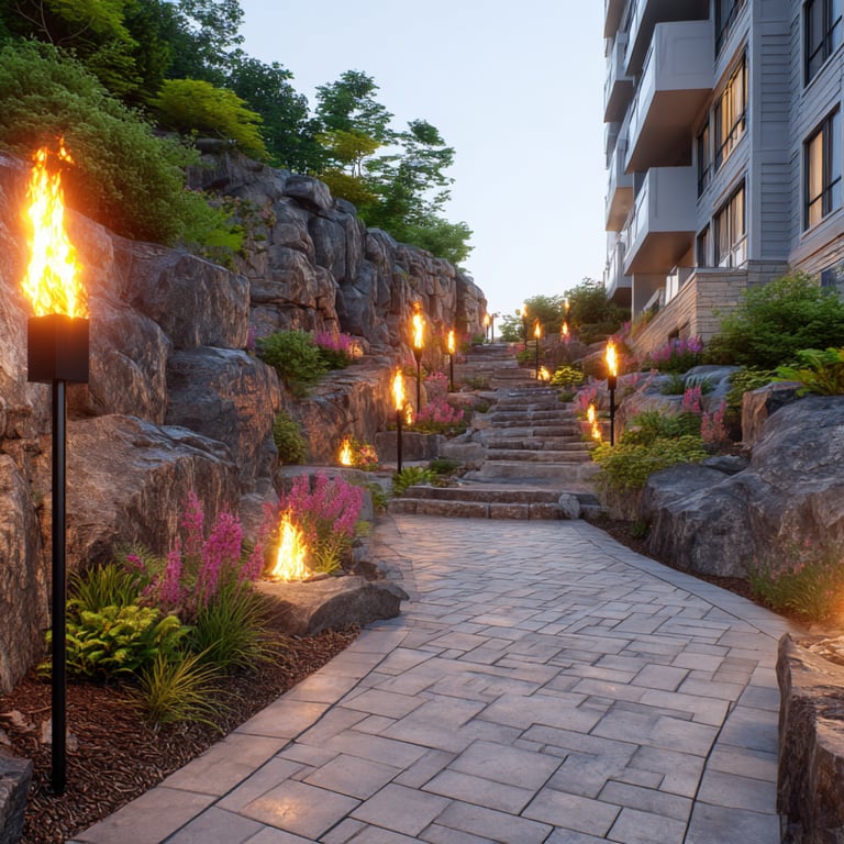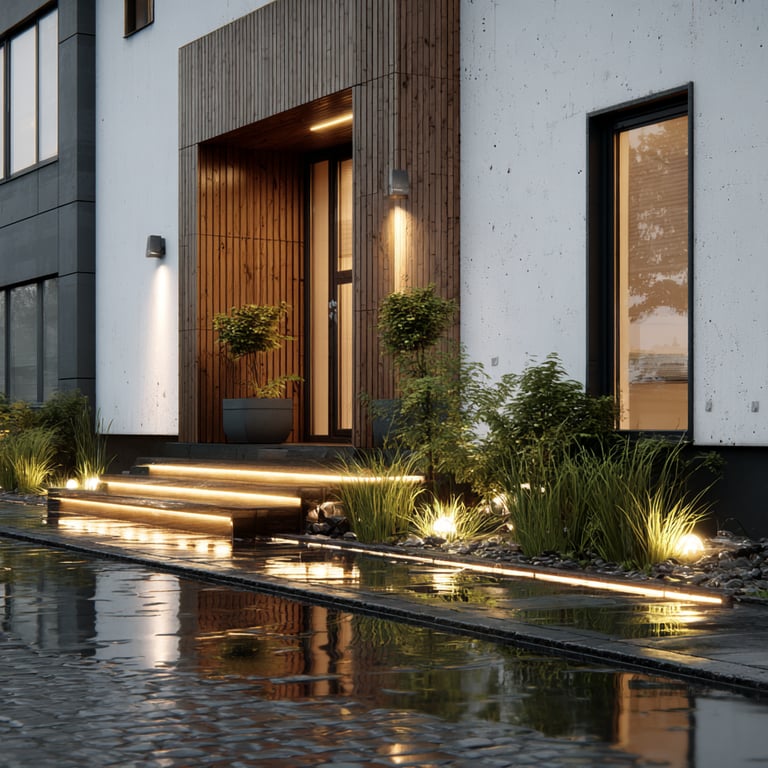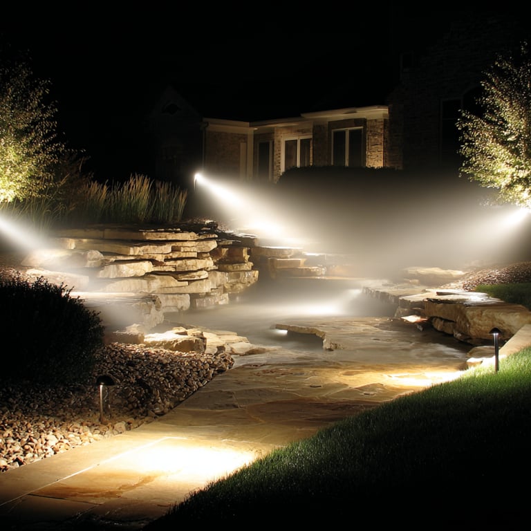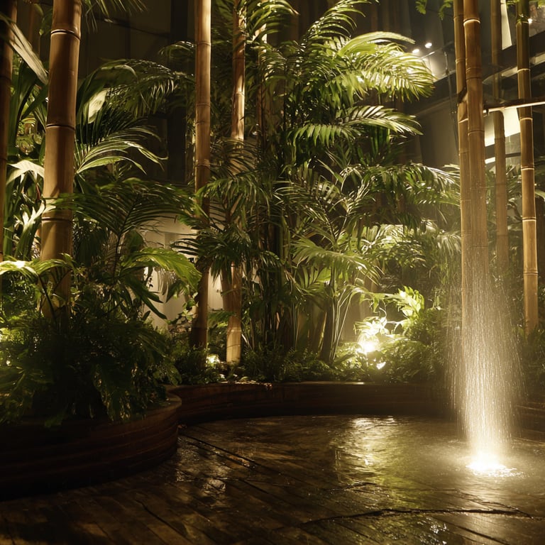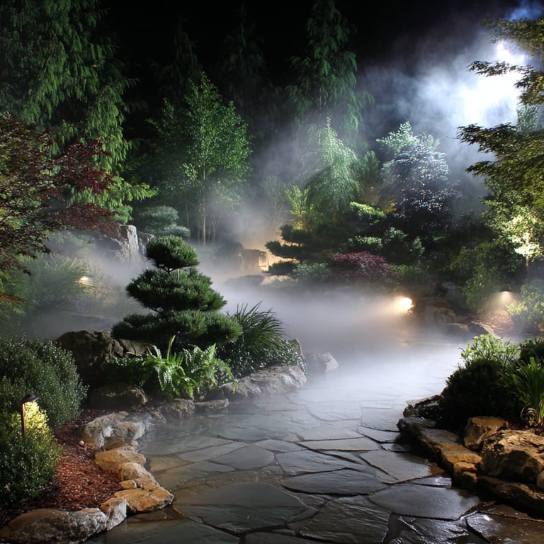 Lighting, flame, mist, and sound — composed to shape mood, reveal beauty, and transform how a garden is experienced at night.